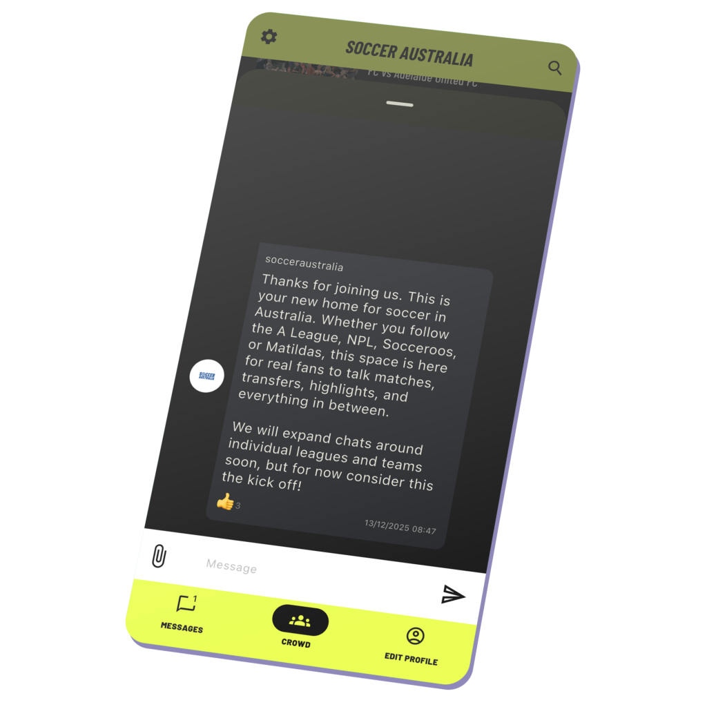From the A-League and National Premier Leagues to the national teams, fans can access highlights, videos, fixtures, live scores, results, team stats, match insights, and real-time updates all in one place. With built-in fan chat and comprehensive coverage across the country, Soccer Australia unifies the game like never before, connecting supporters of every team to every moment that matters.